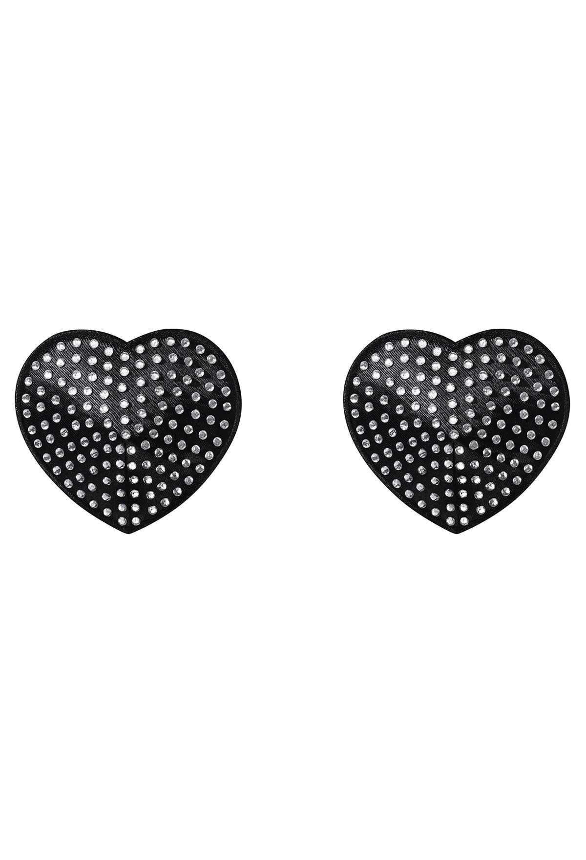 Schwarze Pasties in Herzform. Wiederverwendbar und selbstklebend. Durchmesser: ca, 7,5 cm. Verziert mit kleinen Kristallsteinchen.