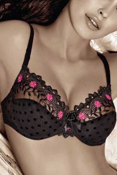 Bügel-BH Grace schwarz. Sommerlicher Soft-BH aus weichem, zarten Tüll mit feiner Kontraststickerei. Floral gemustert. Die Cups sind im unteren Bereich unterlegt.