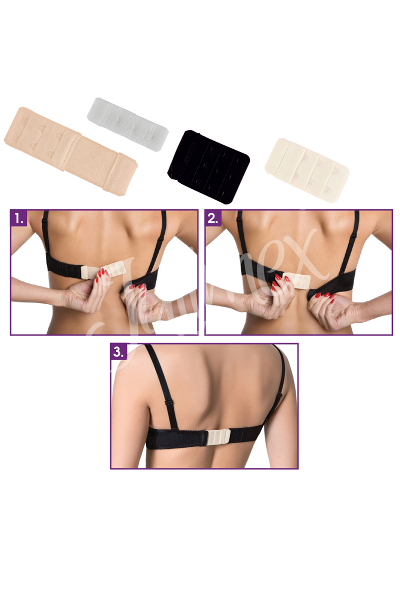 BH-Extender 3 Haken in weiß. Einfache und schnelle Möglichkeit, den Umfang Ihres BH zu erweitern, falls er zu eng ist. Für alle BHs mit drei Haken geeignet.