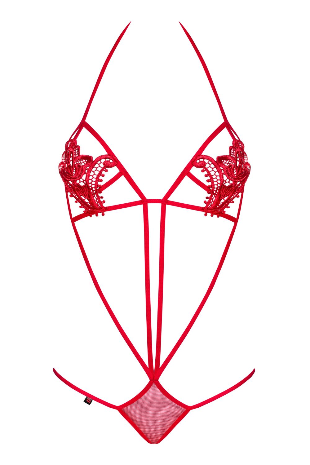 Sexy Body Luiza rot von Obsessive. Erotischer Body aus weichen und elastischen Bändern mit Blumenstickereien auf den Cups. Farbe: rot Verfügbare Größe: S/M