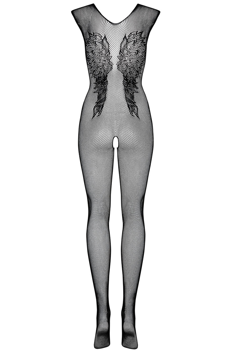 Ouvert Bodystocking in Netzoptik in schwarz mit Flügelmotiv und wilden Details vorne und hinten -... mehr