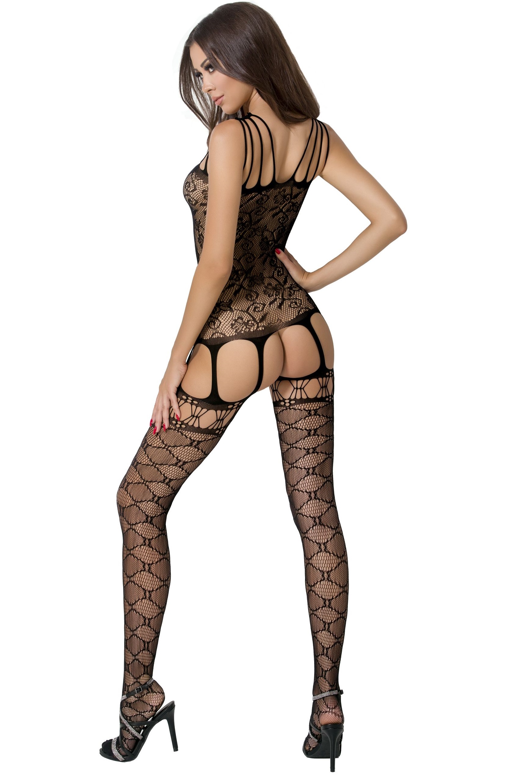 Ouvert Netz-Catsuit in schwarz mit floraler Spitzenoptik. Mit einer Zierschnürung vorne und einem Muster an den Beinen. Das Bodystocking ist sehr bequem und bringt die Vorzüge jeder Frau zur Geltung.
