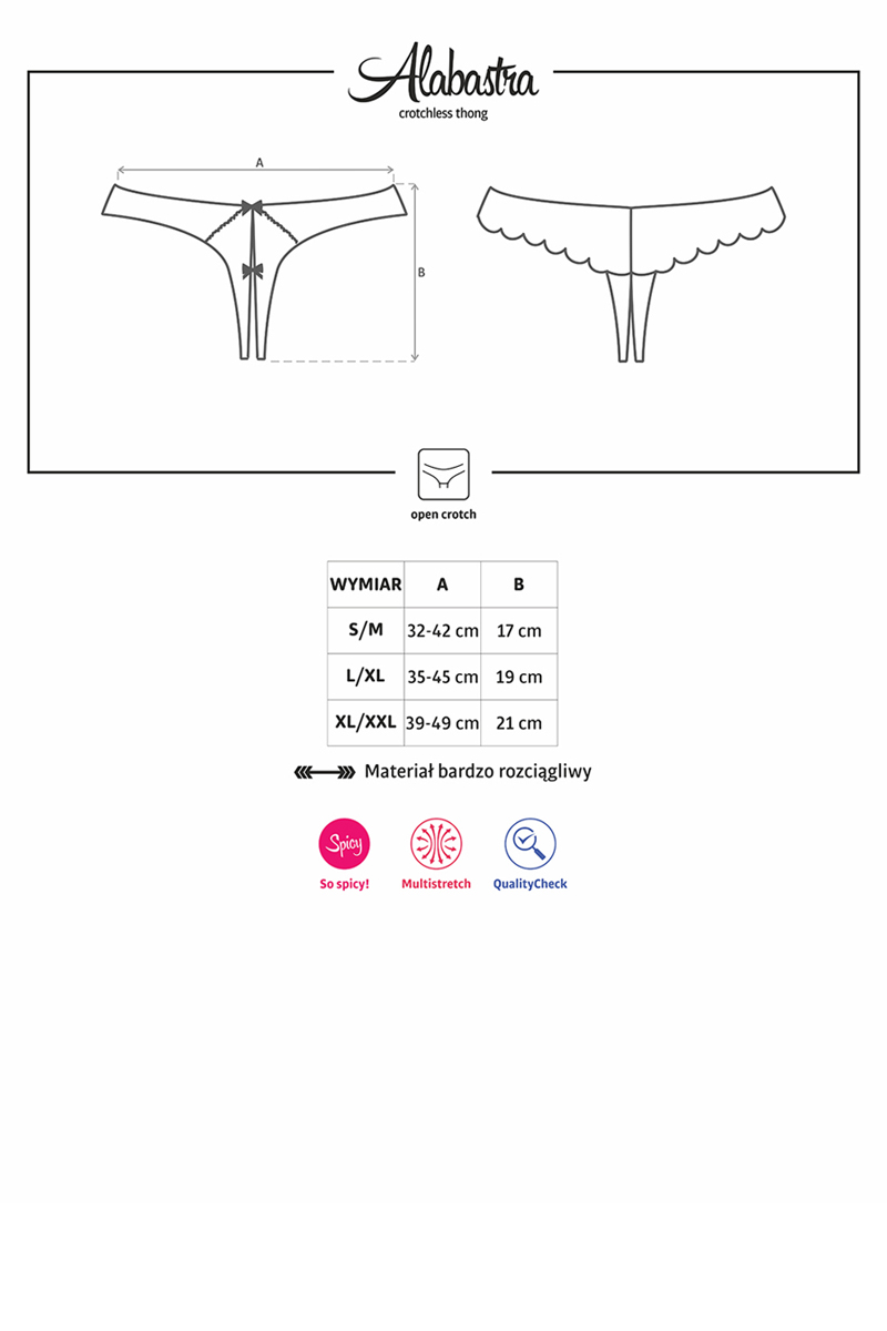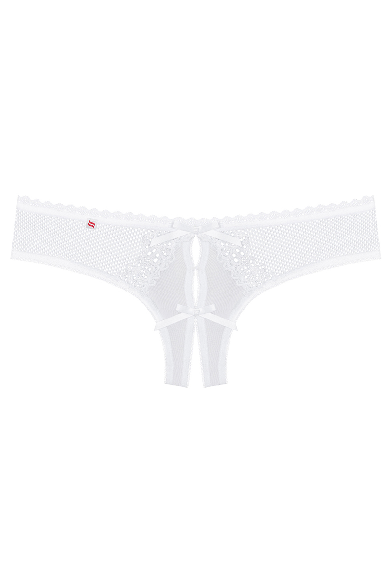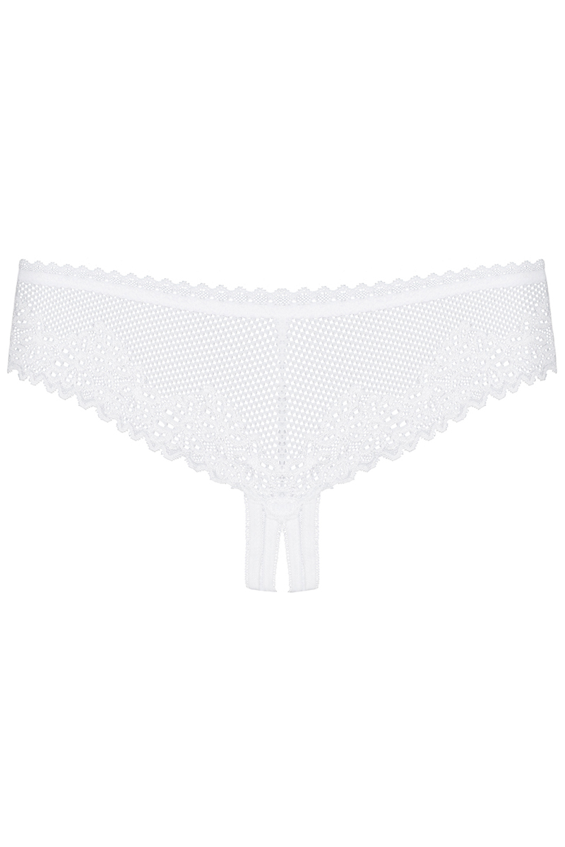 Ouvert-String in weiß mit Schleifen und filigranen Details. Im Schritt offen, mit Spitze verziert. Elastisches und schönes Material.