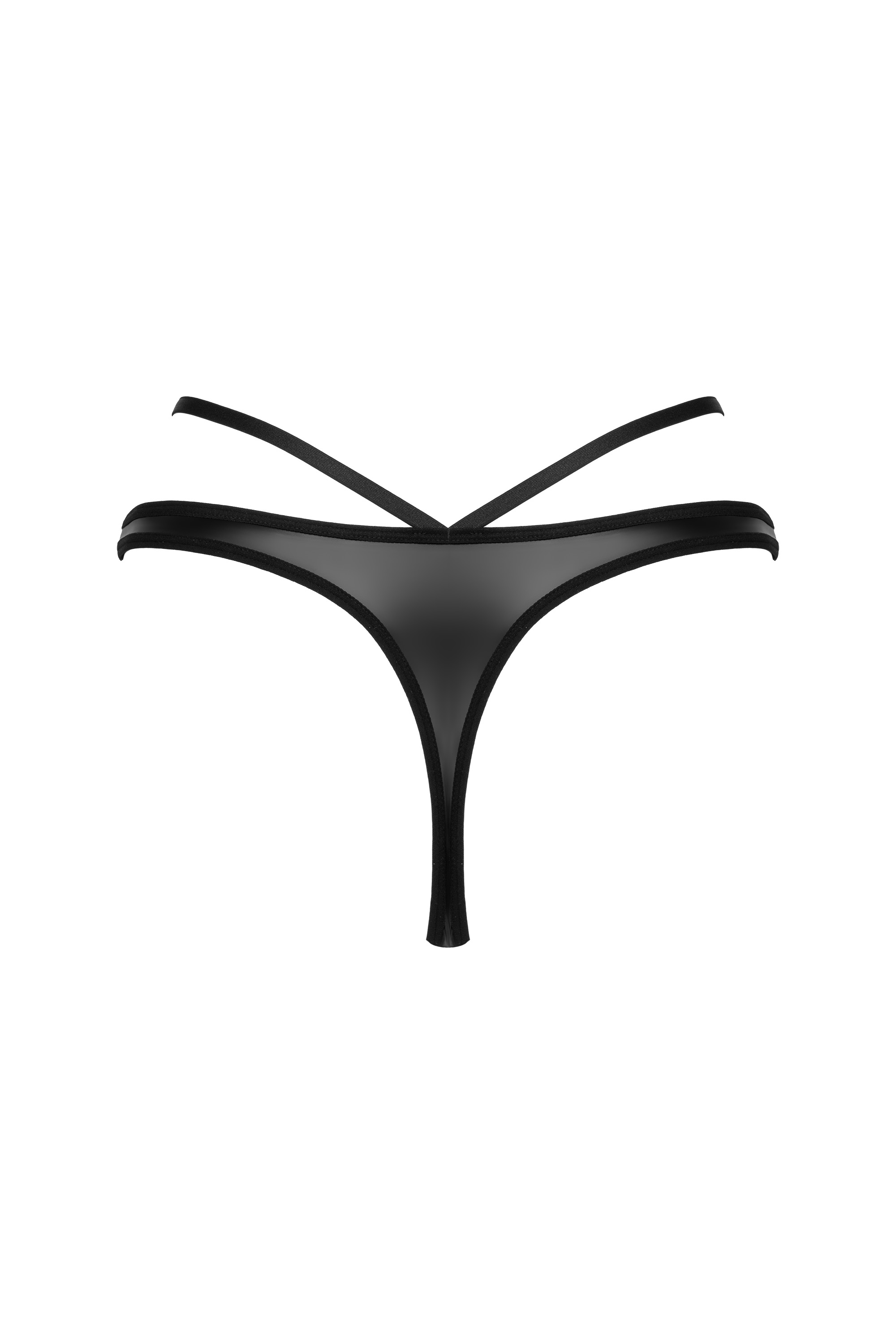 Schwarzer Riemen-String aus elastischem Kunstleder. Mit leichter Polsterung im Schritt.