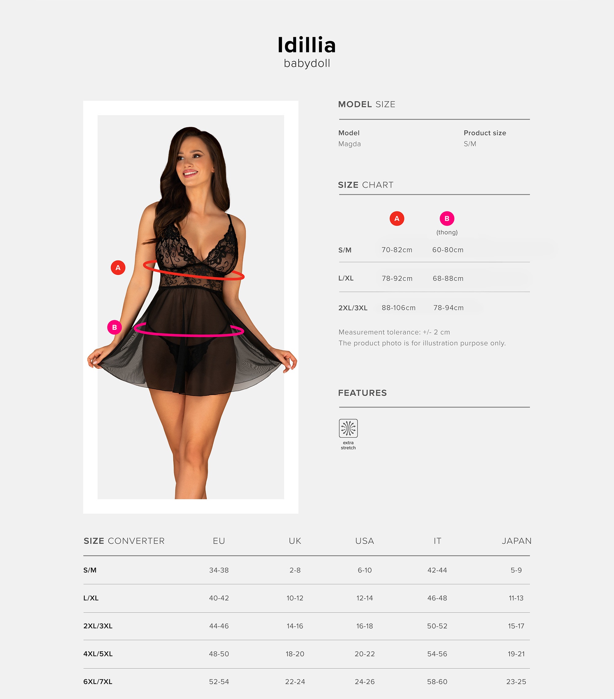 Dieses schwarze Babydoll ist im oberen Brustbereich aus feiner Spitze verarbeitet. Umhüllt wird... mehr