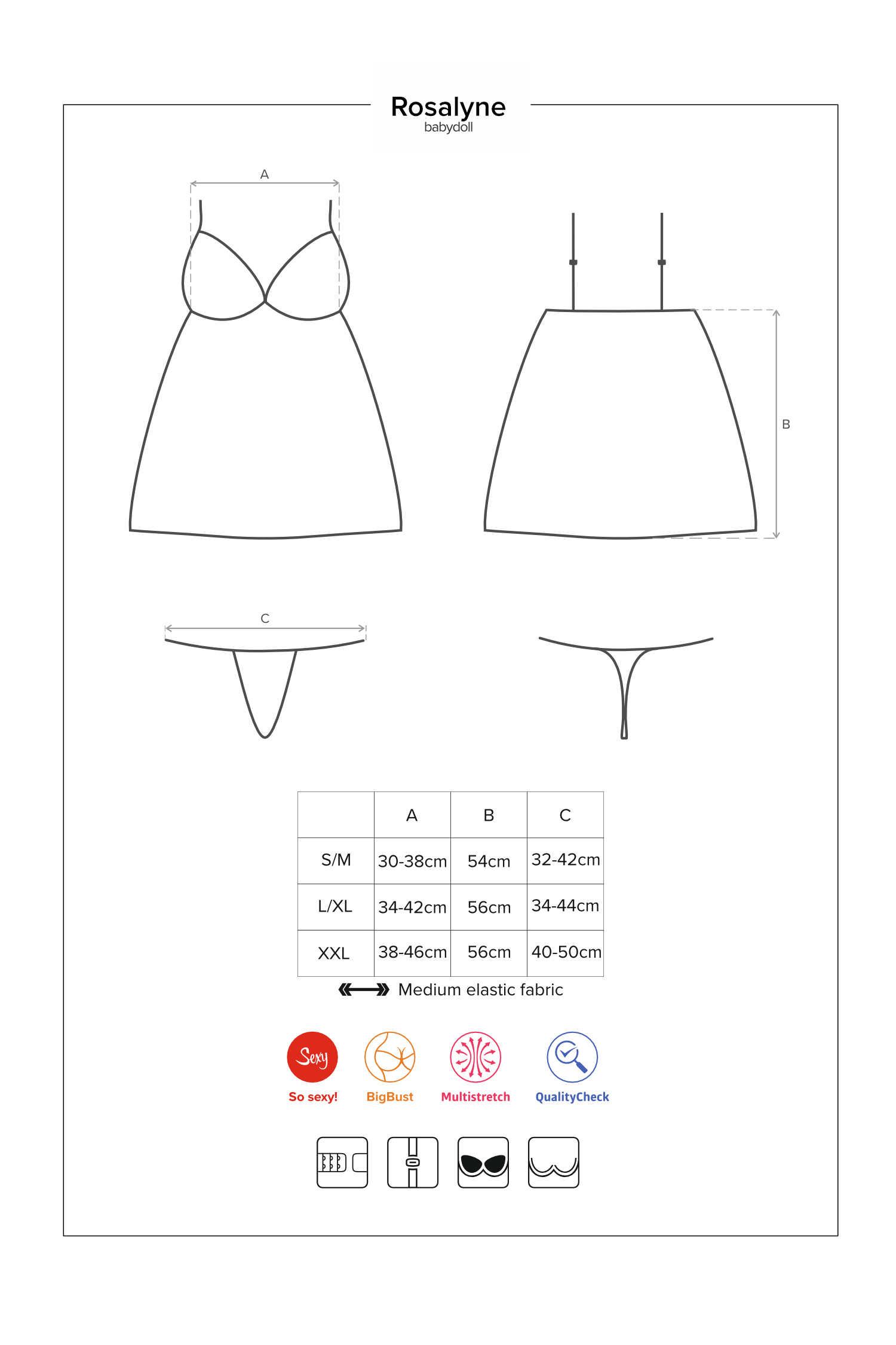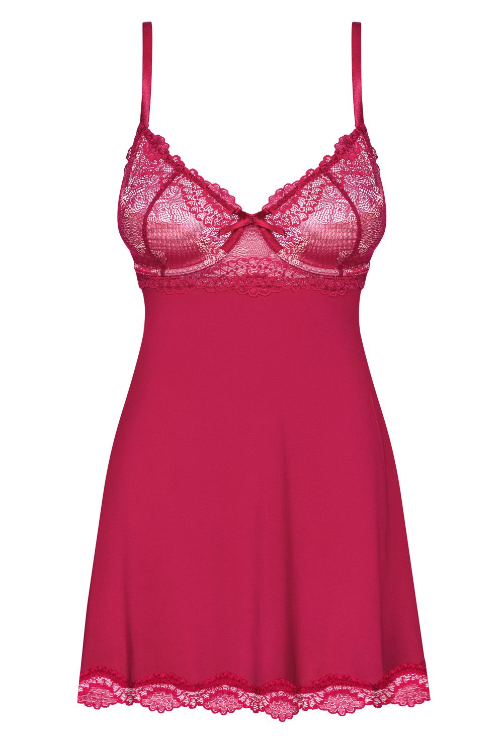 Babydoll in weinrot mit Spitze. Träger und Rückenverschluss sind individuell einstellbar. Die gepolsterten Bügel-Cups sind mit einem floralen Motiv verziert. Passender String im Set enthalten.