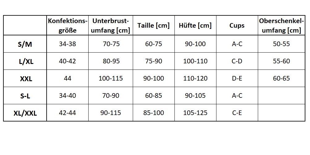 • Größen: S-L oder XL/XXL