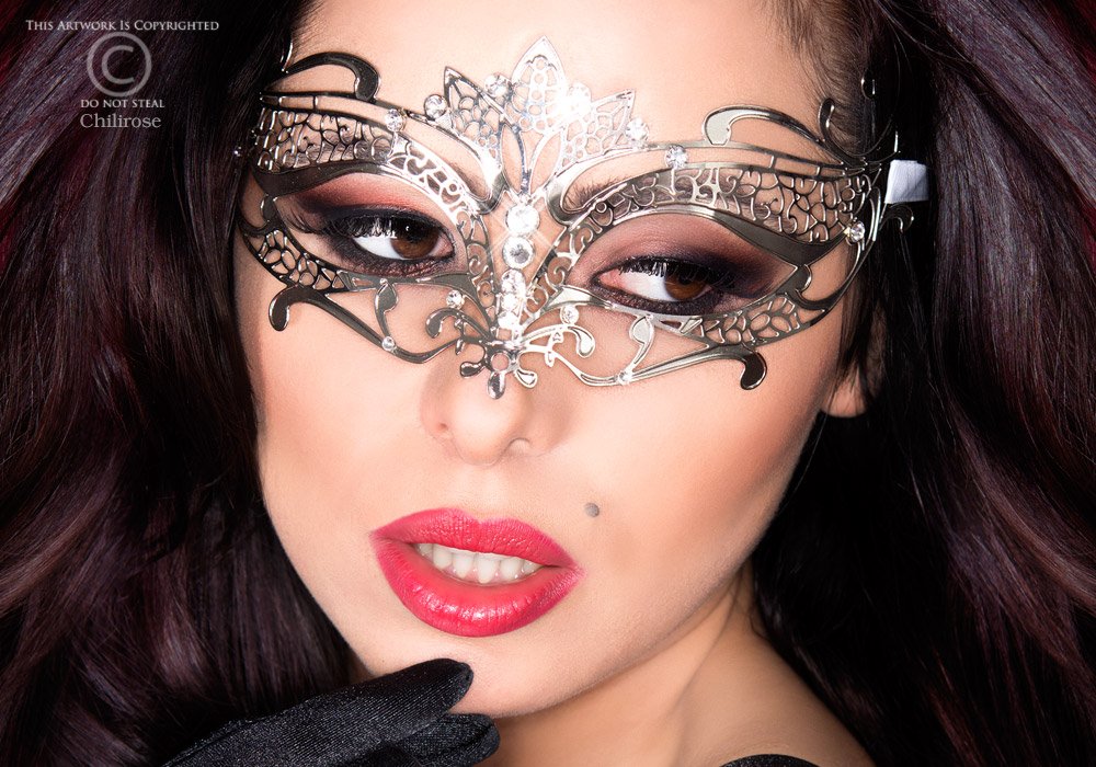 Silberne Messing-Maske von Chilirose. Diese geheimnisvolle Maske aus Messing ist verziert mit... mehr