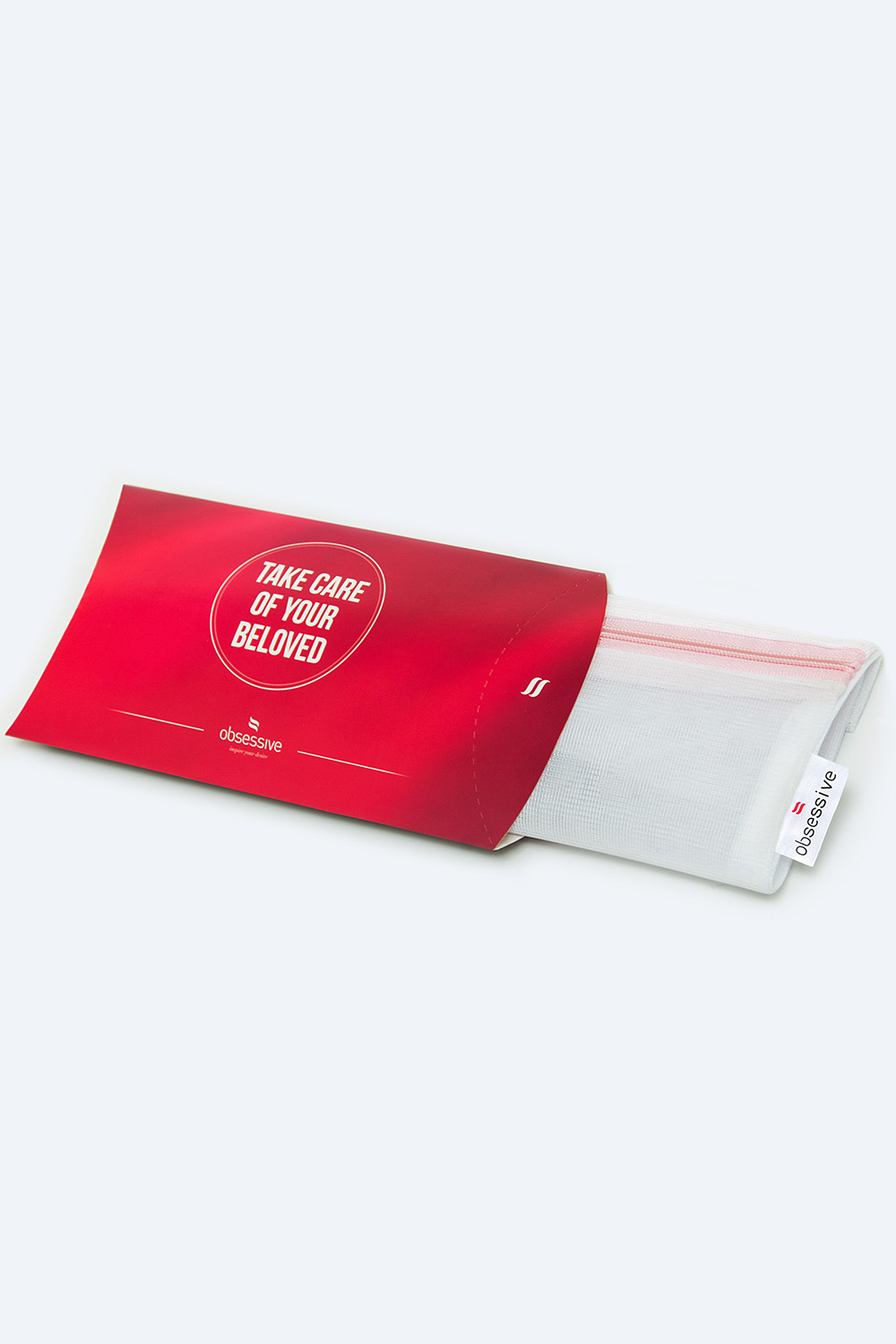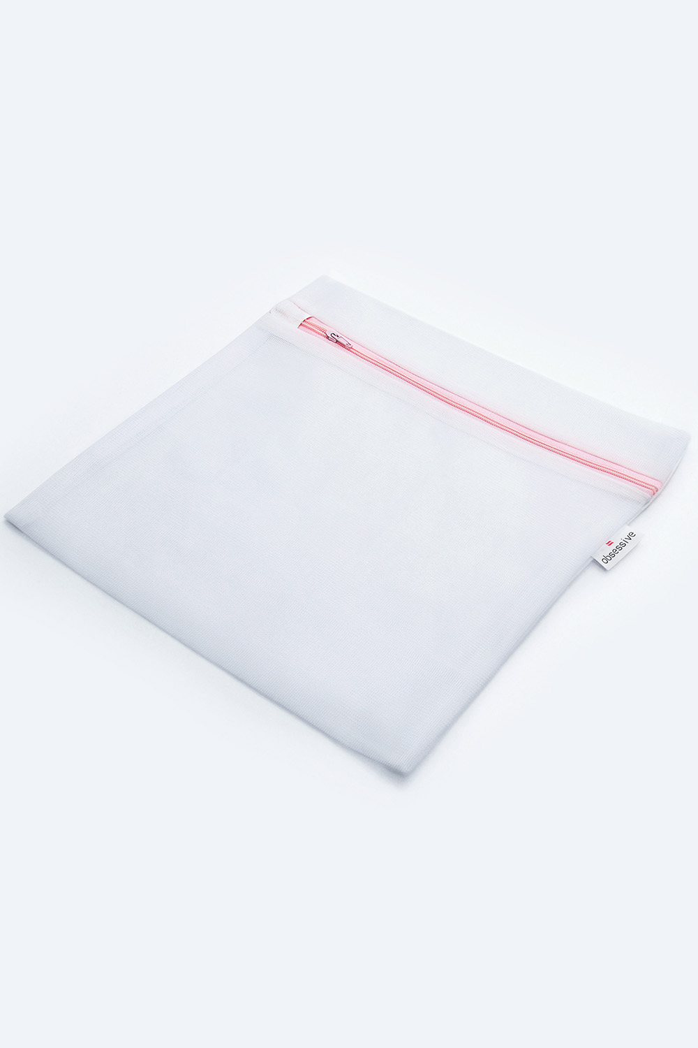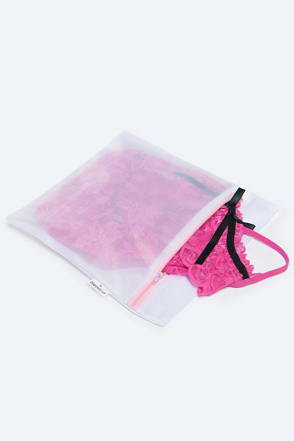Weißes Wäschenetz von Obsessive. Praktisches Wäschenetz aus weißem Mesh-Material mit pinkem Reißverschluss, das Ihre Dessous vor rauen Waschgängen schützt.