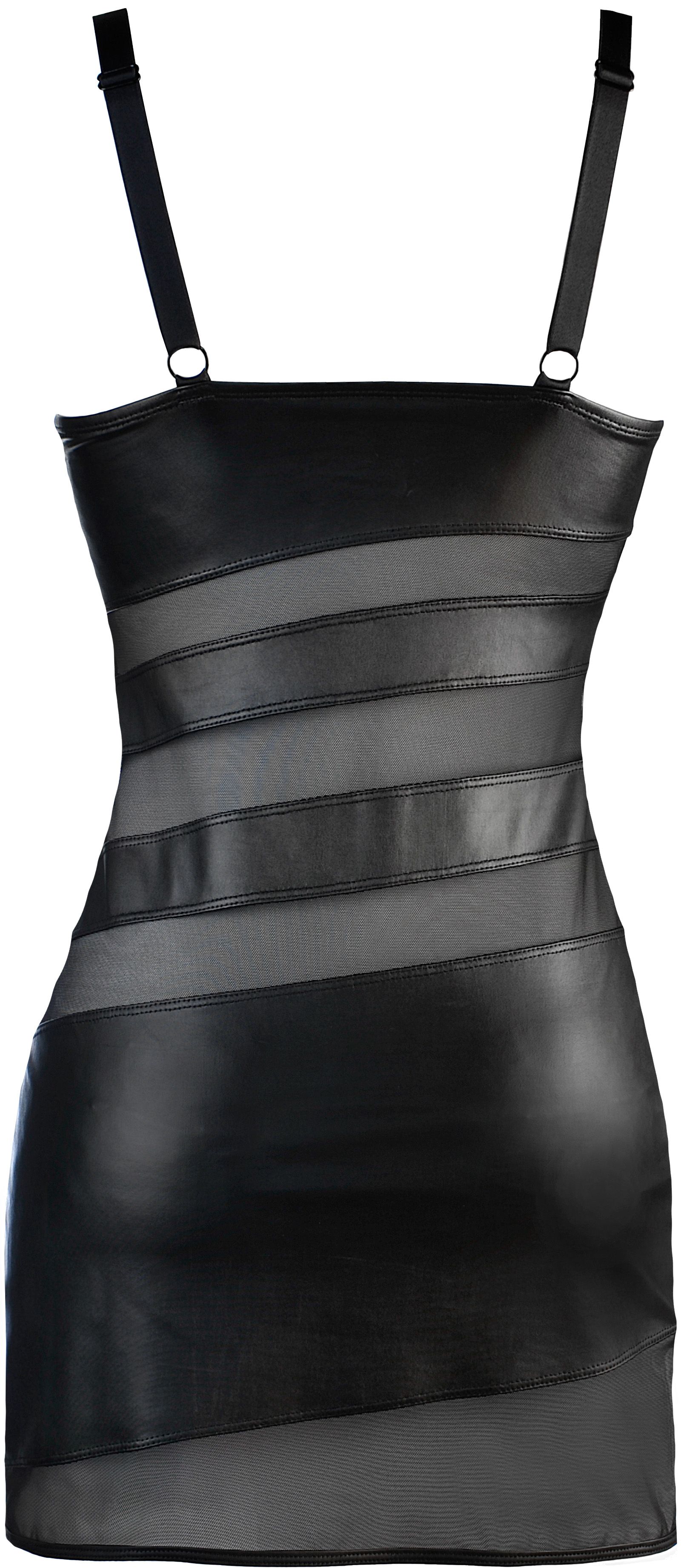 Schwarzes Wetlook-Minikleid mit Bügel-Cups. Aus elastischem Kunstleder mit transparenten... mehr