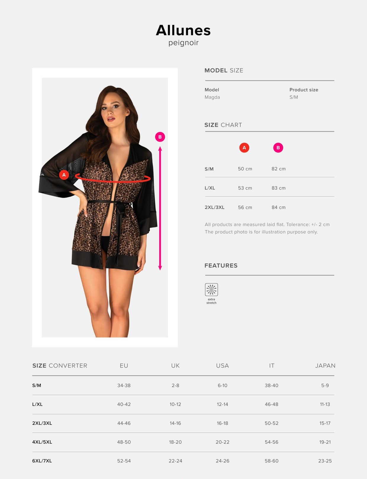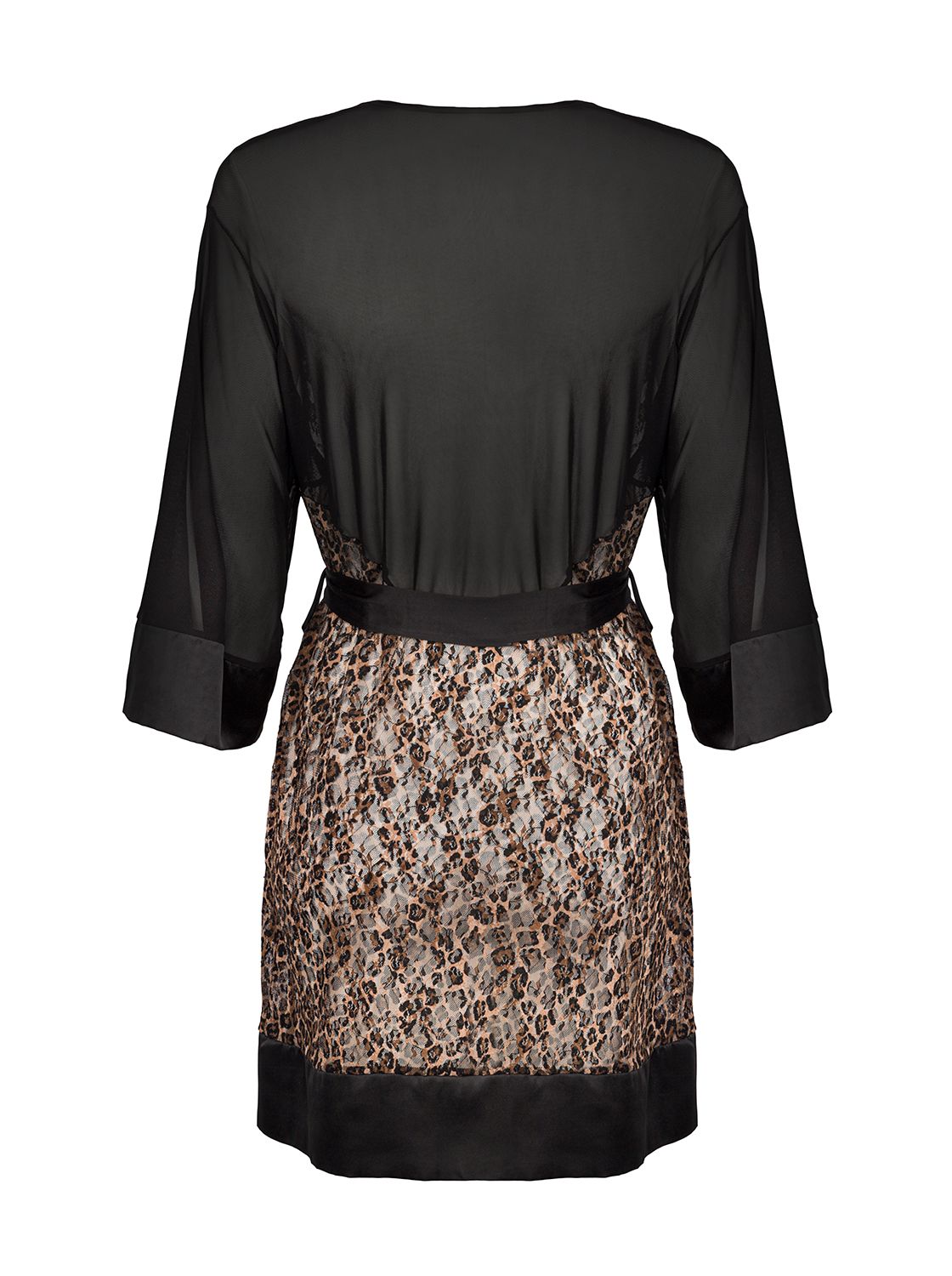 Schwarzer Morgenmantel aus transparentem Stoff mit Leopard-Muster. Wird mit einer Satinschleife... mehr